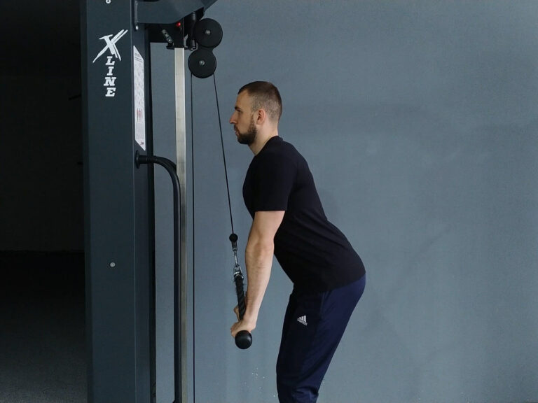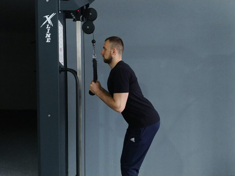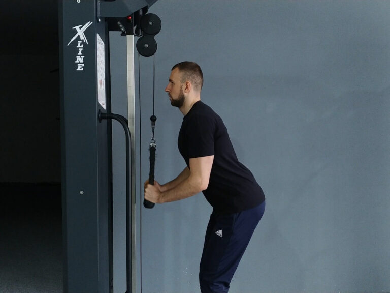 Розгинання рук у верхньому блоці з канатною ручкою — це вправа, спрямована на ізольовану роботу трицепсів. Виконується за допомогою кросовера, де канатна ручка забезпечує природну амплітуду руху та додаткове розтягнення м’язів у нижній точці вправи.