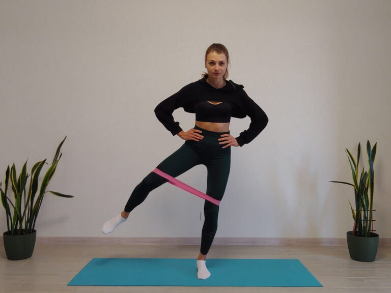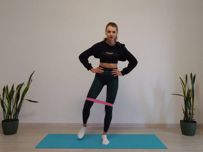 Відведення ноги в сторону з резинкою — це вправа, спрямована на зміцнення сідничних м’язів, особливо середнього сідничного м’яза, а також на покращення стабільності тазостегнового суглоба. Виконується за допомогою фітнес-резинки, яка створює додатковий опір. Підходить для тренувань у залі чи вдома.