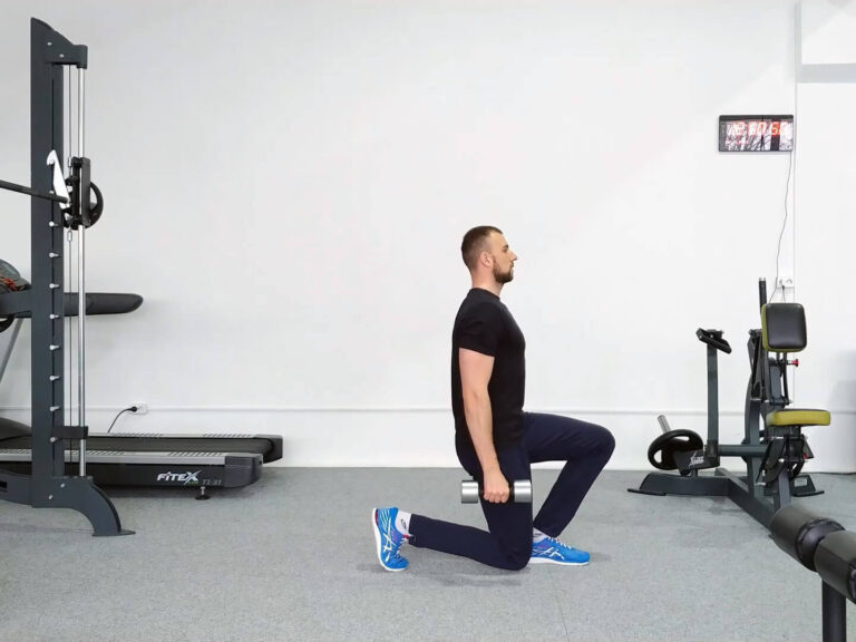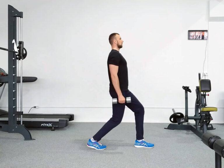 • Переднє коліно не повинно виходити за носок, а заднє має майже торкатися підлоги, утворюючи гострий кут.