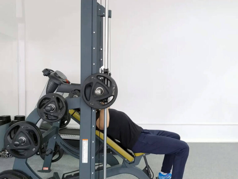 Жим штанги на похилій лавці догори в тренажері Смітта акцентує навантаження на верхній частині грудних м’язів. Завдяки стабільності конструкції тренажера Смітта, вправа дозволяє краще зосередитися на роботі м’язів і зменшує ризик неправильного виконання. Вона також задіює дельтовидні м’язи та трицепси, роблячи її ефективною для розвитку верхньої частини тіла.